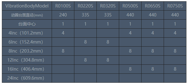 圓形擴展臺具有良好的頻響特性,其臺面螺釘分布符合上表標(biāo)注尺寸。