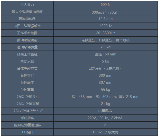 符合JJG298《中頻標(biāo)準(zhǔn)振動臺(比較法)計(jì)量檢定規(guī)程》和JJG948《電動振動試驗(yàn)系統(tǒng)計(jì)量檢定規(guī)程》計(jì)量指標(biāo)合格要求;